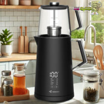 کتری ۱.۸ لیتری قوری ۰.۹ لیتری صفحه کنترل لمسی هوشمند و رنگارنگ پنل کنترل قاب شیشه‌ای بادوام 6 برنامه از